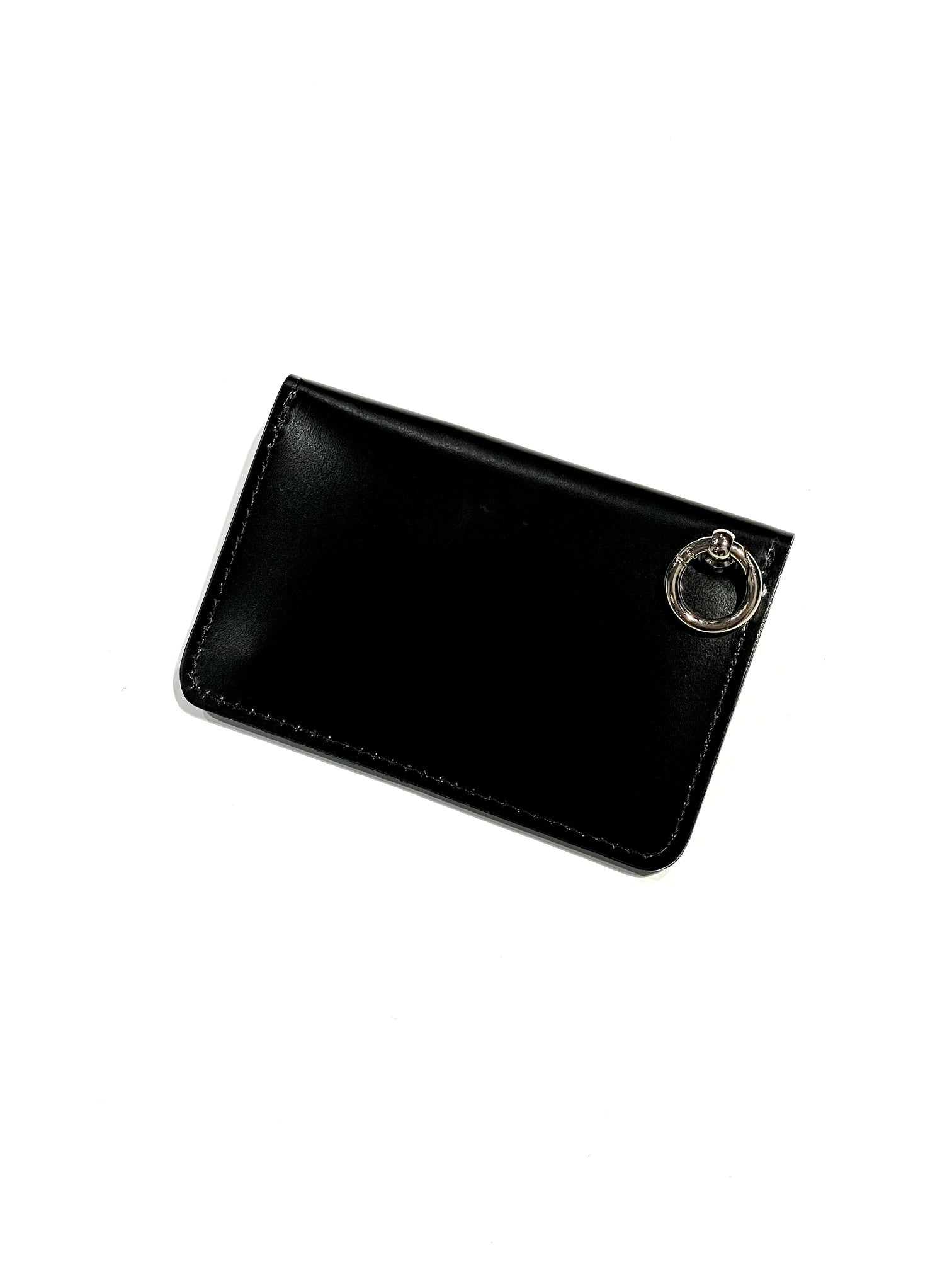 カードホルダー。後ろにリング状の接続金具。スナップ開閉。