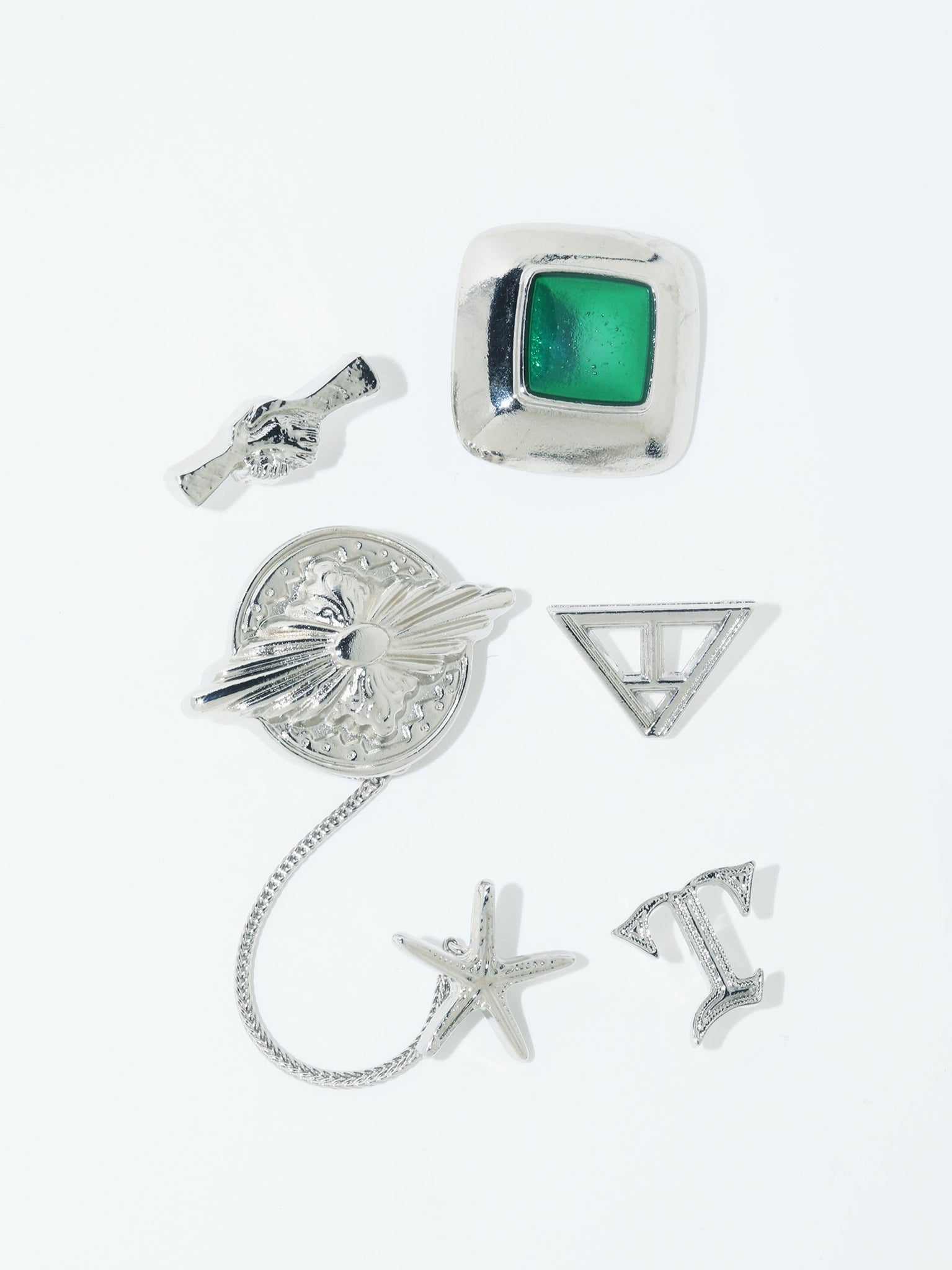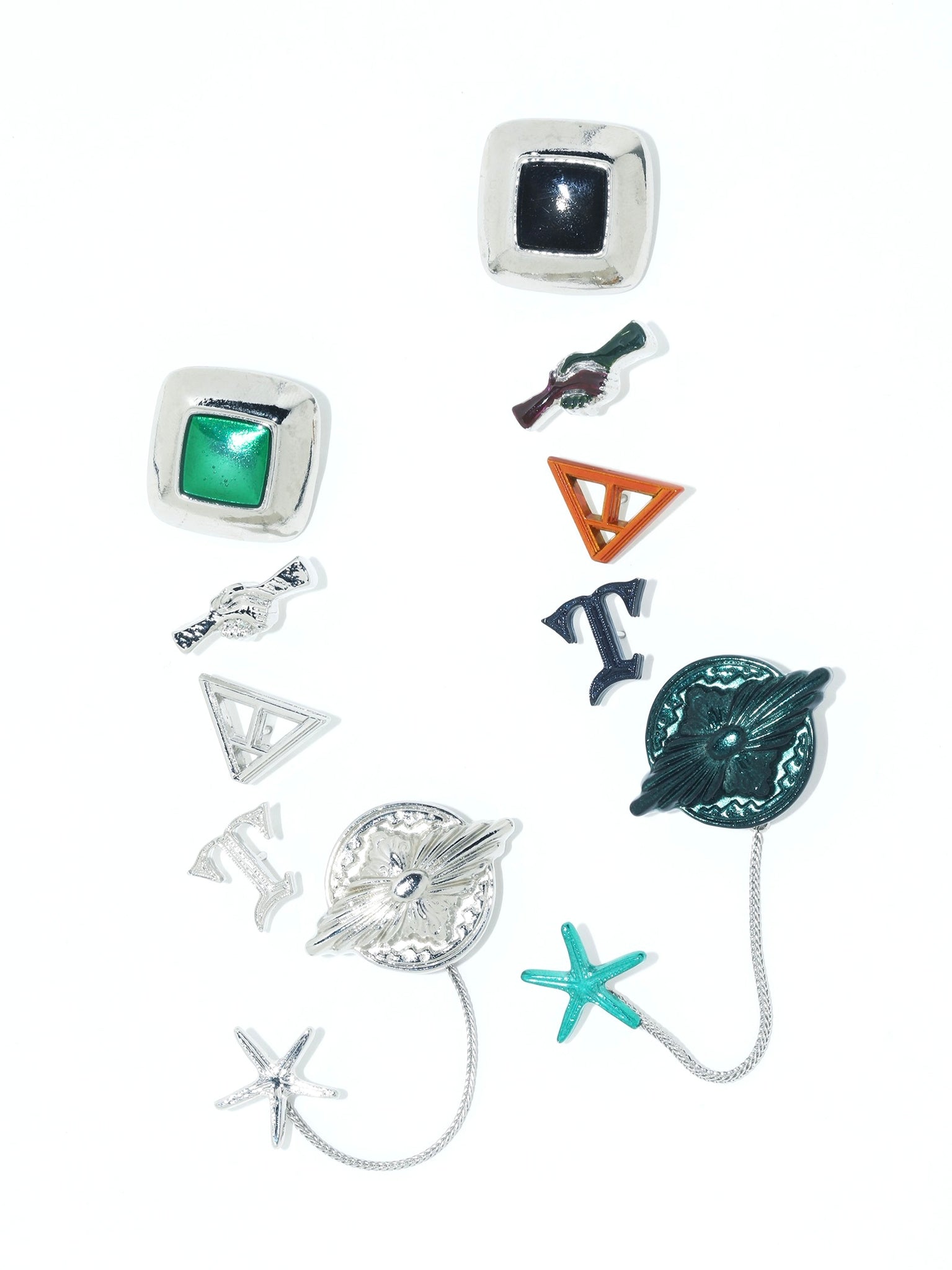 6種類のモチーフピンがセット。ジャケット、ドレス、Tシャツなどあらゆるニーズに着用可能。