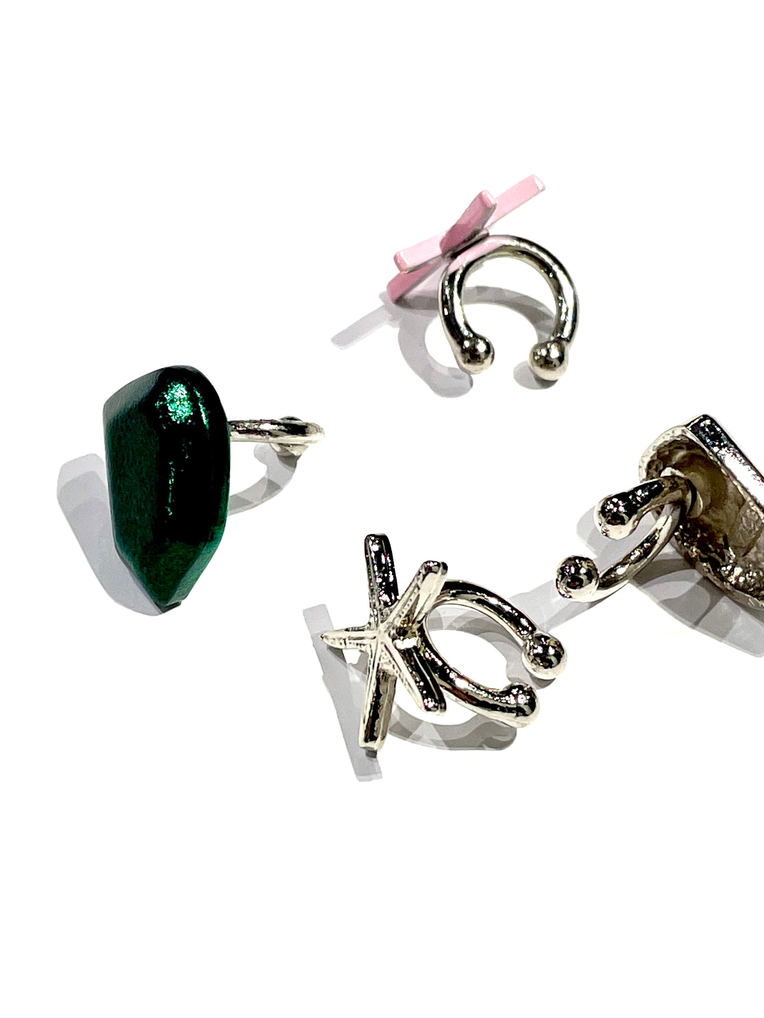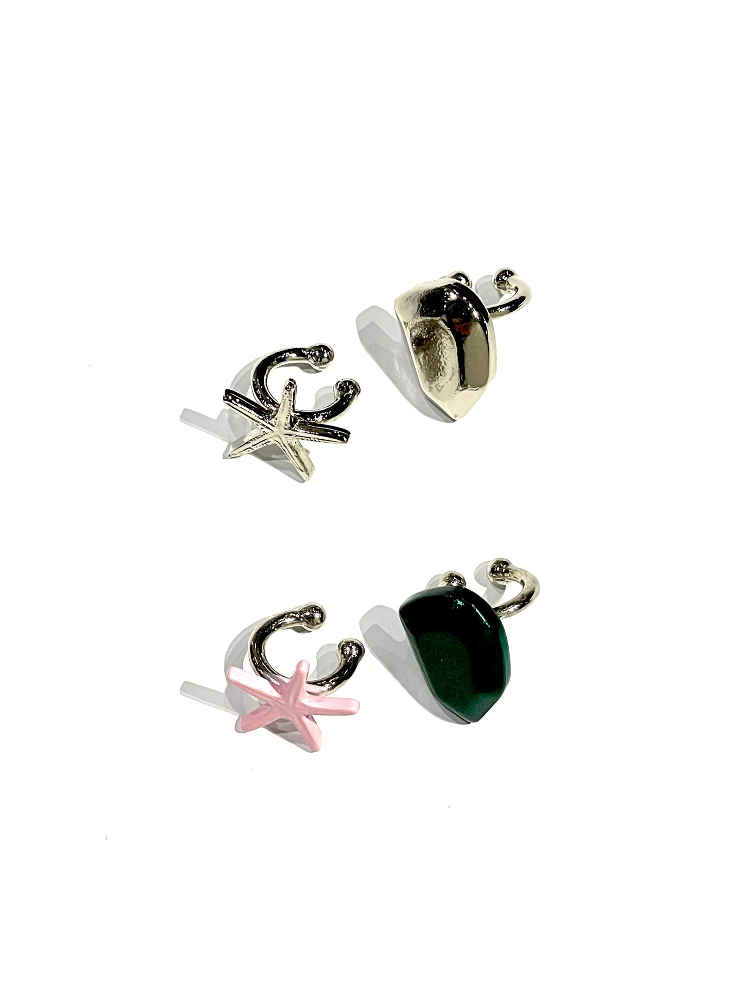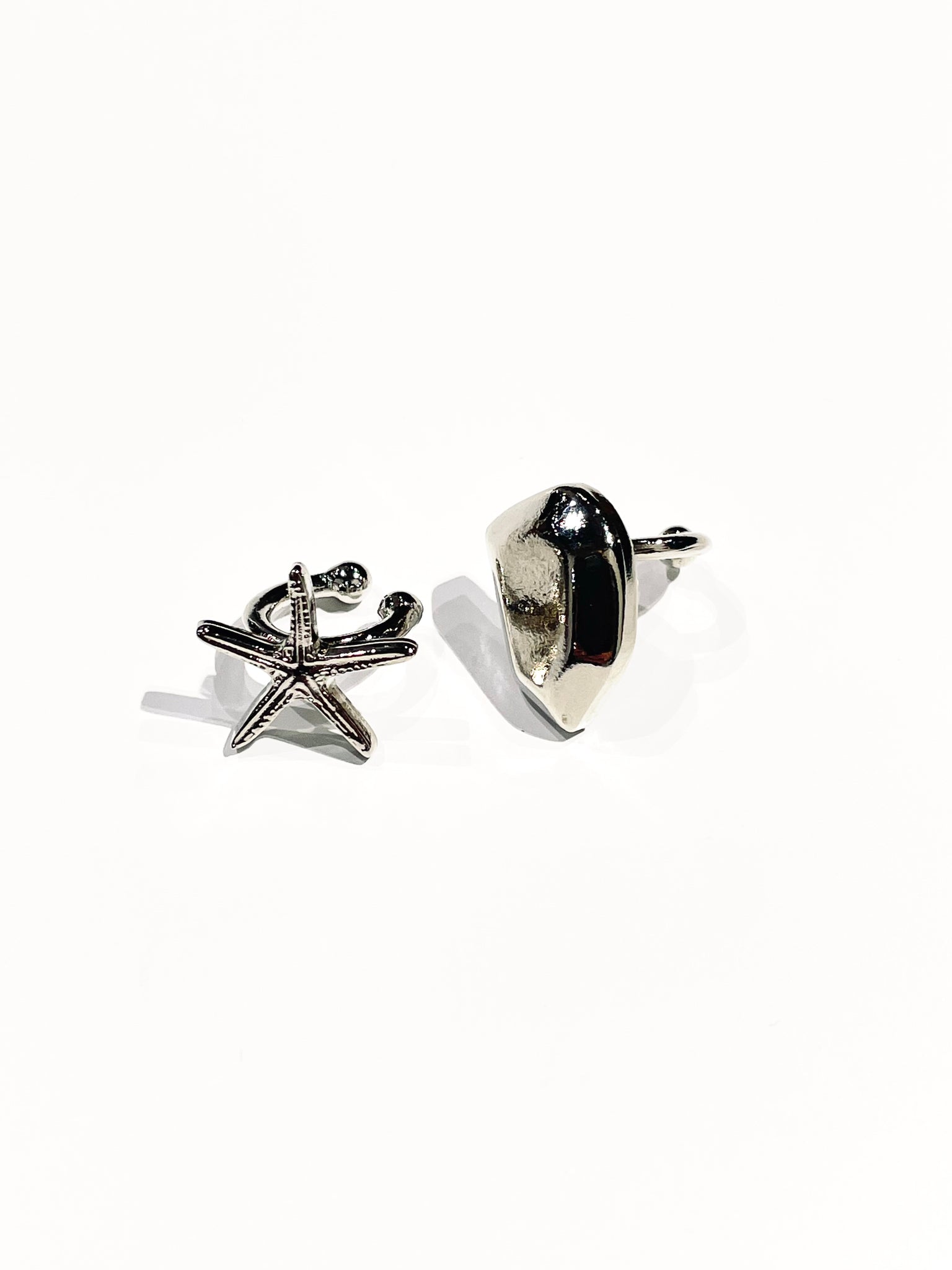 2種類のモチーフがセットになったカフセット。両耳に別々、片耳に2つ着用可能。