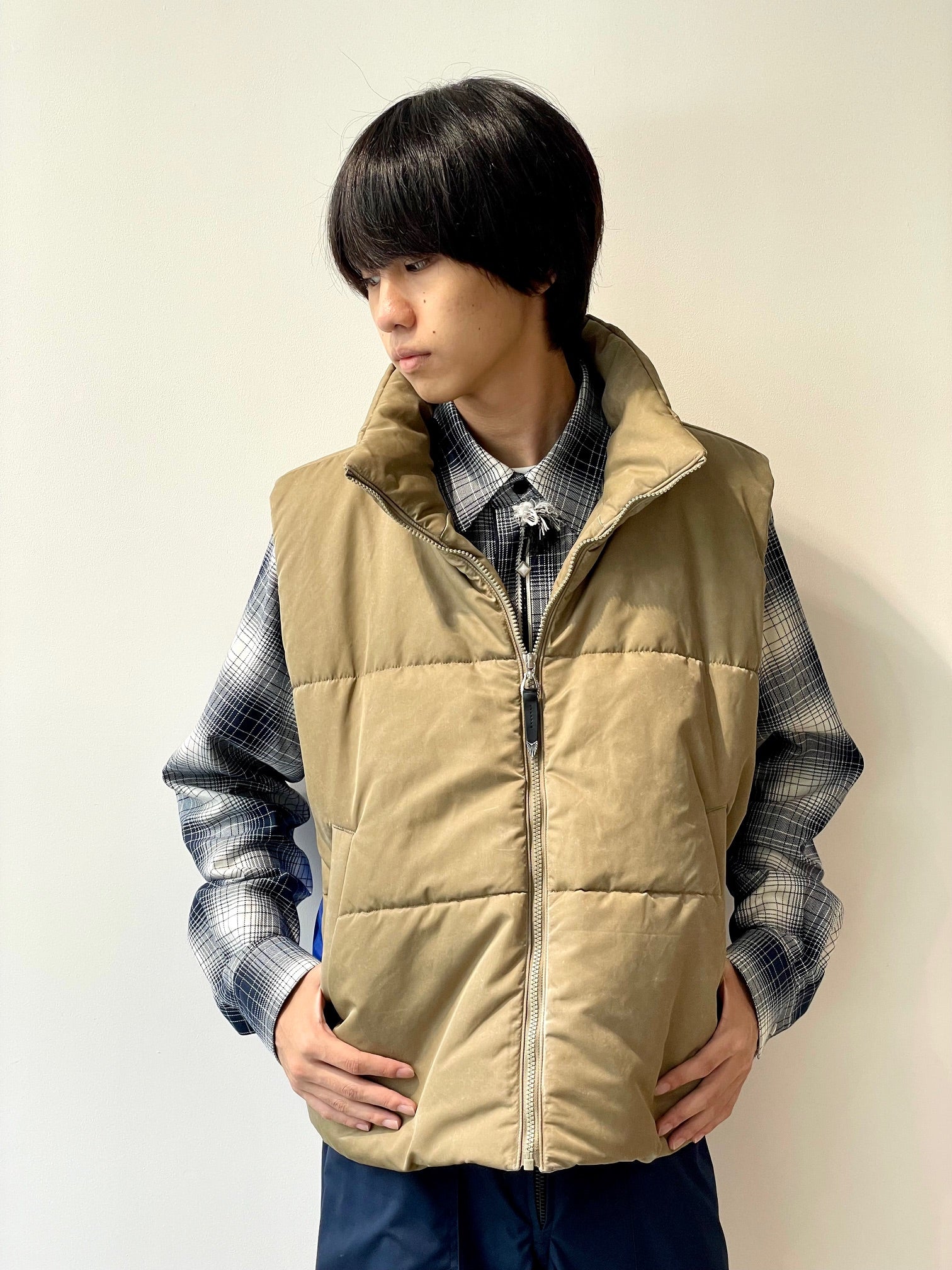 軽量中綿ベスト。バック配色。ジップ開閉。Tシャツにも、シャツにも、アウターにもオーバーウエアで着用可能な万能ベスト。