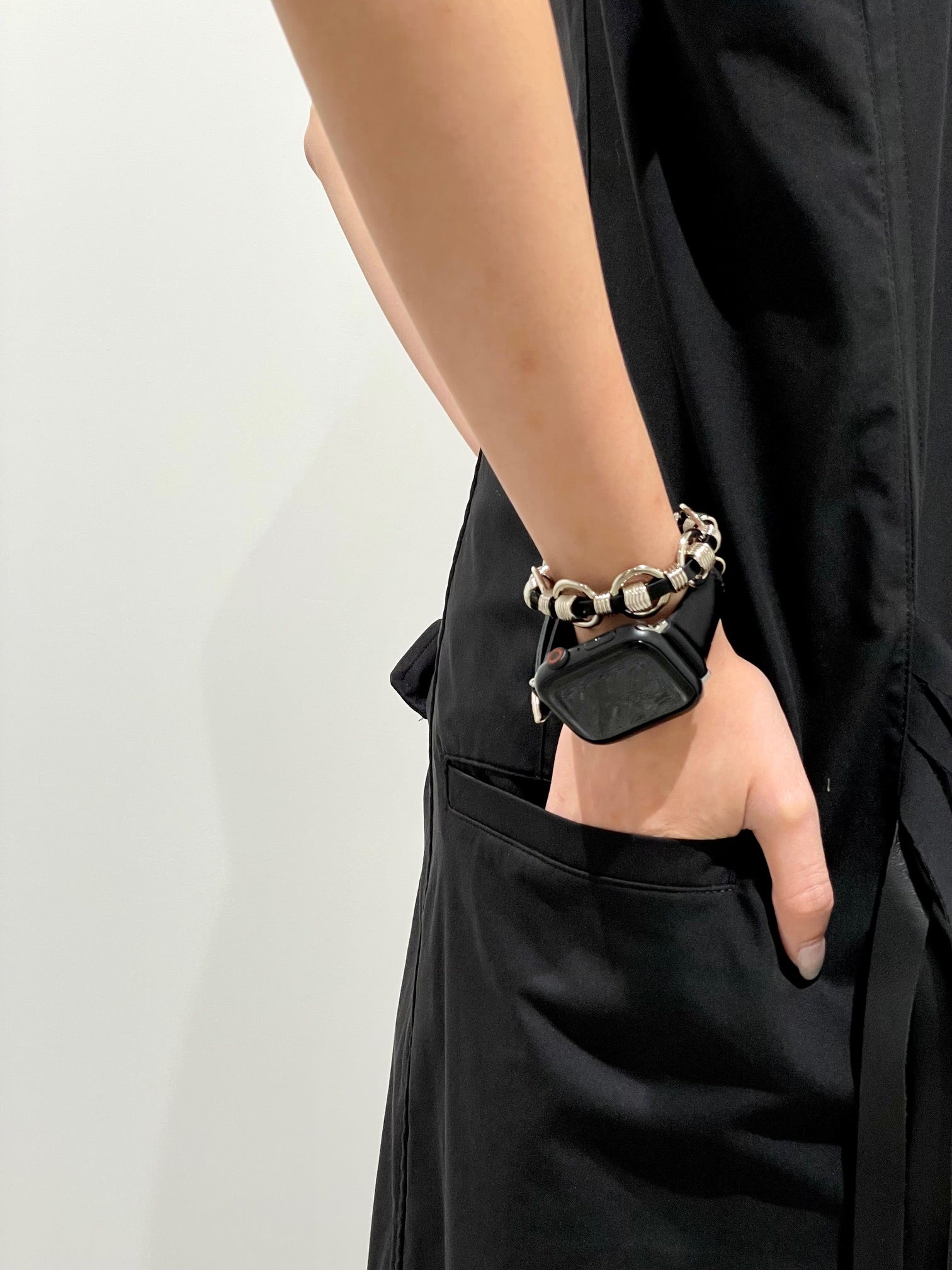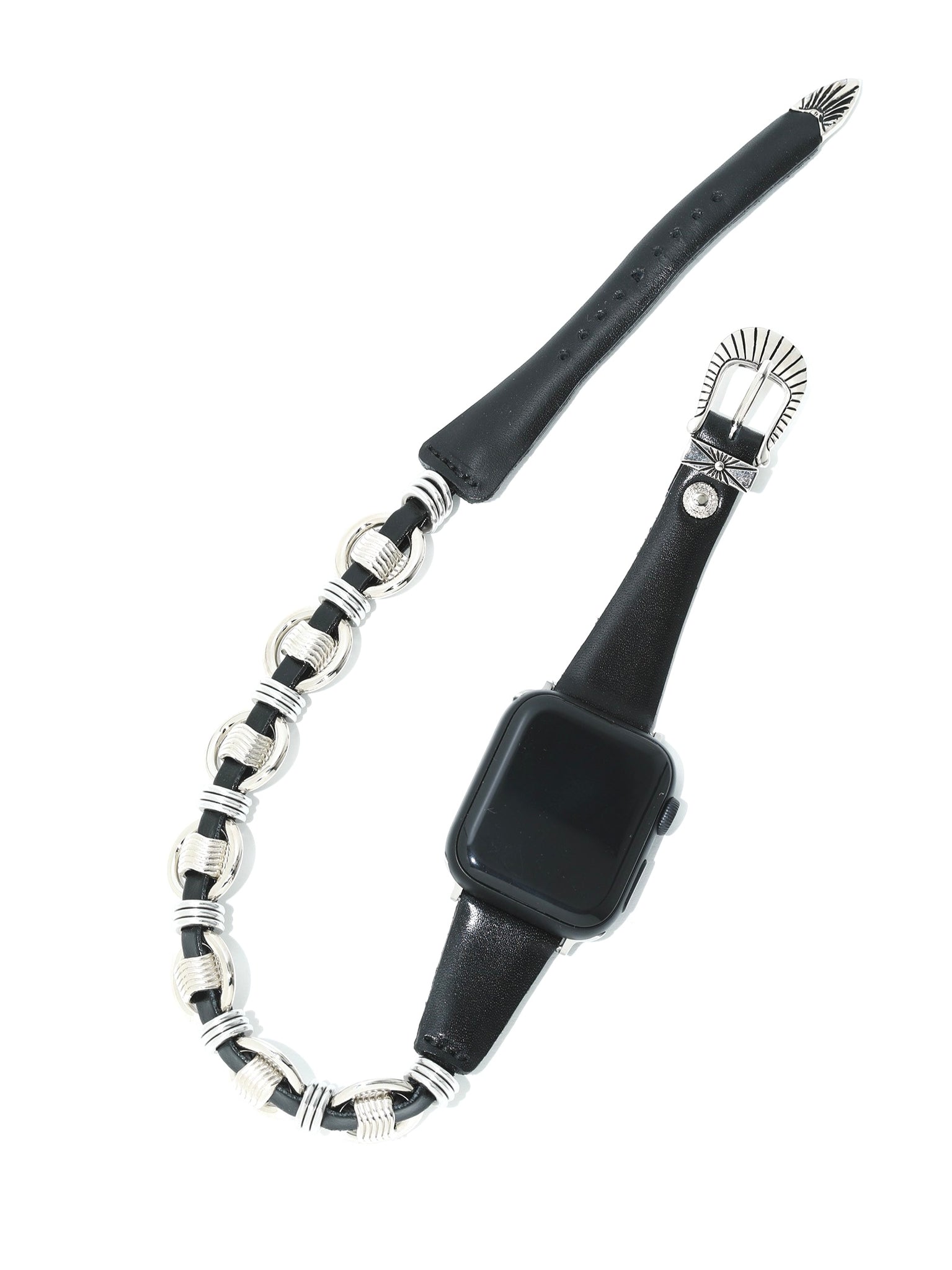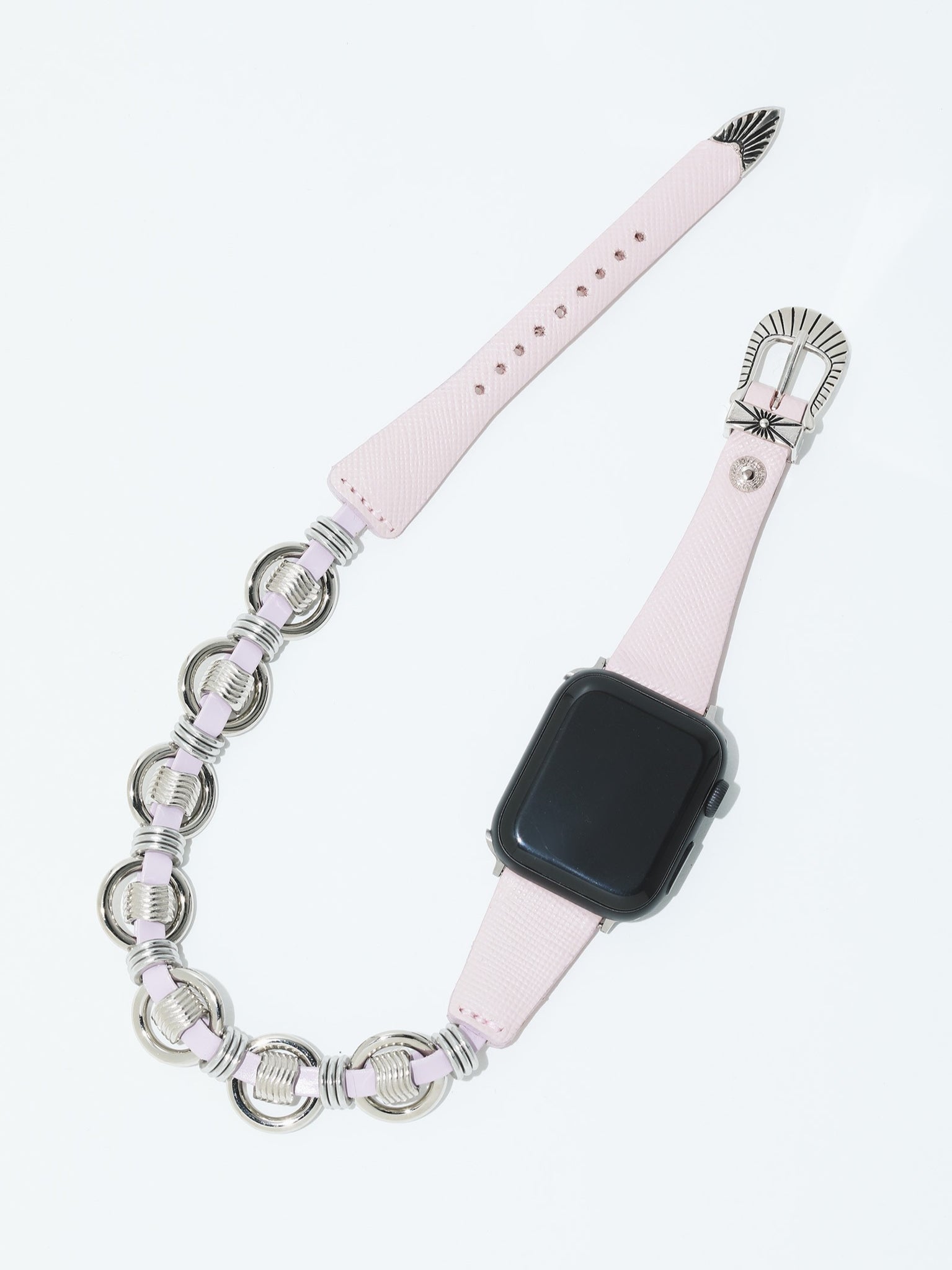 リング状のメタルパーツ付きウォッチベルト。2重巻きで使用。Apple Watch対応。