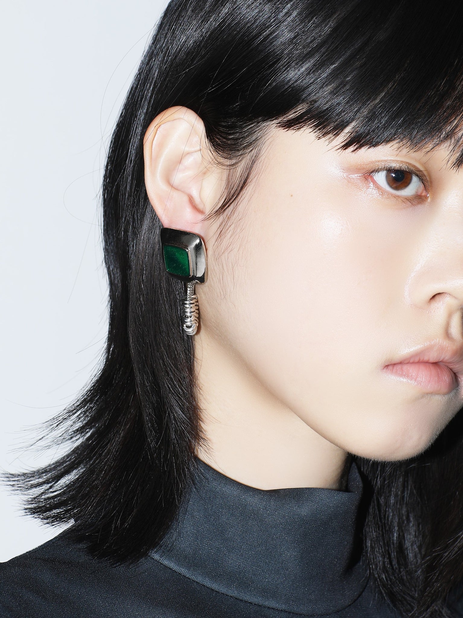 STONE BEADS PIERCED EARRINGS - BLACK / ONE