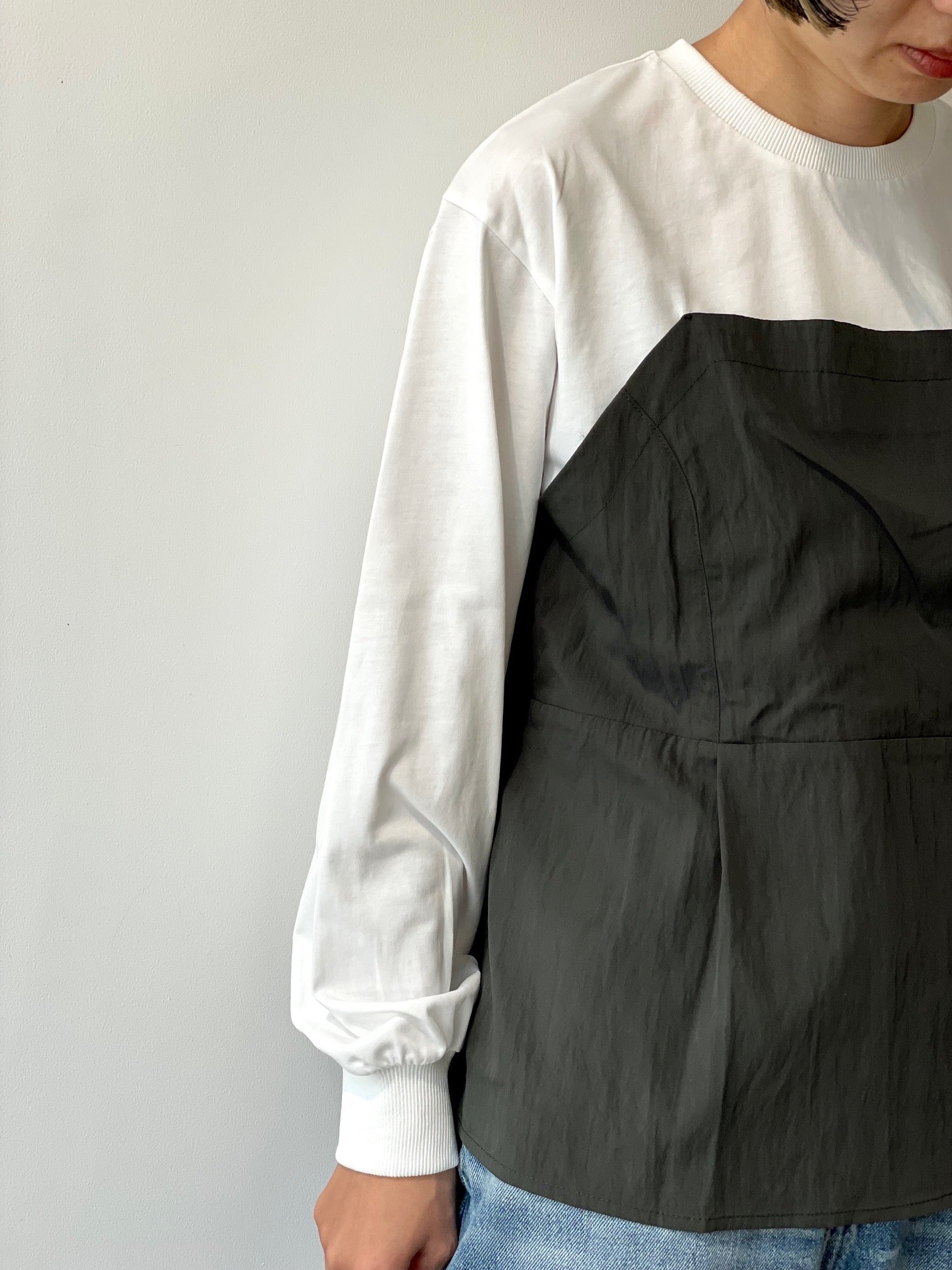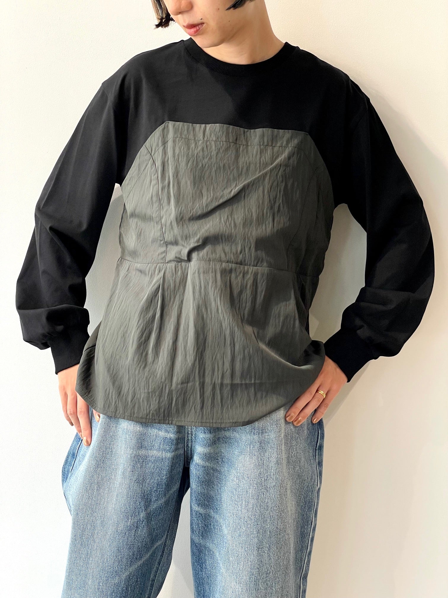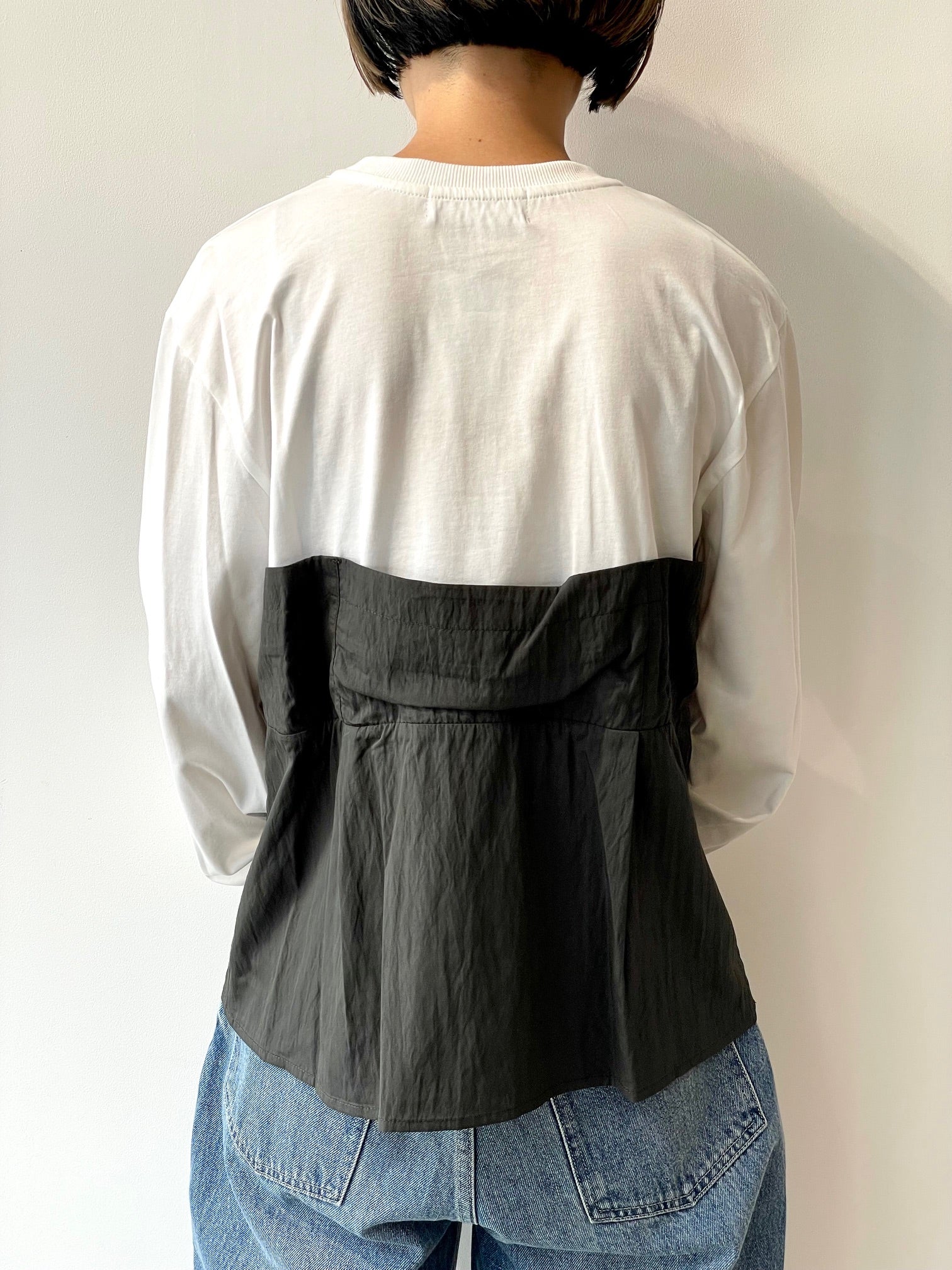 MATERIAL : カットソー部分コットン100% 布帛部分レーヨン74% ナイロン26%