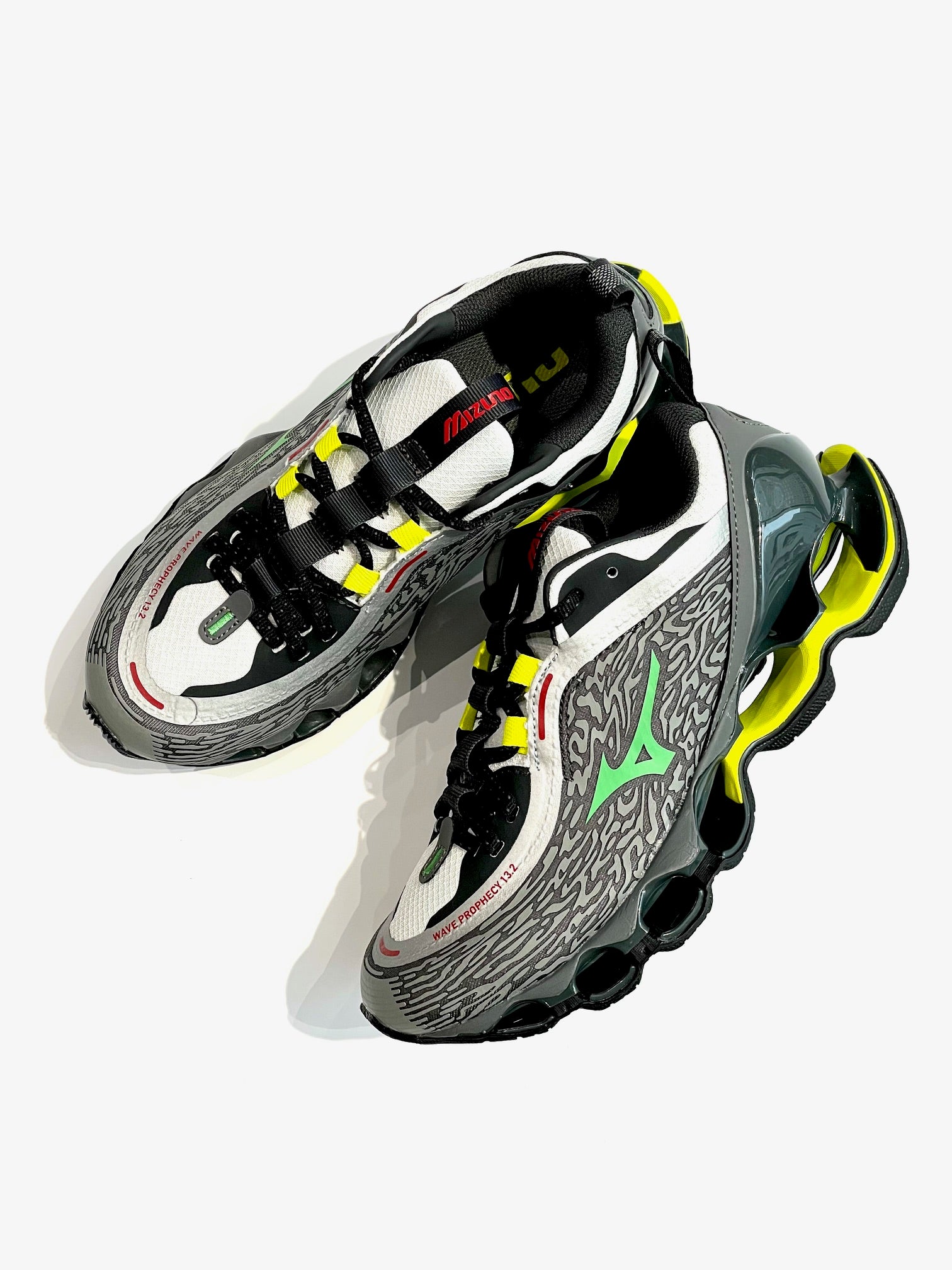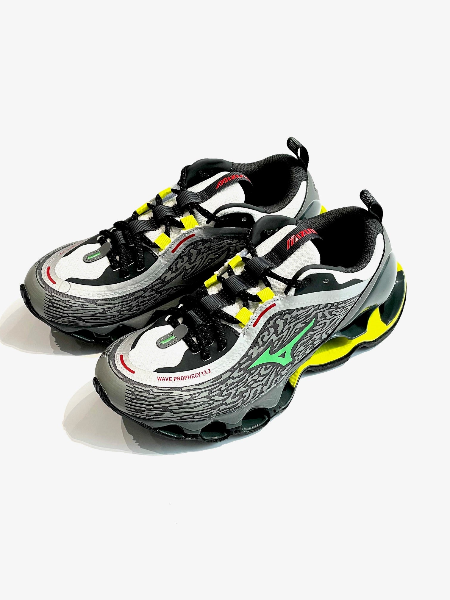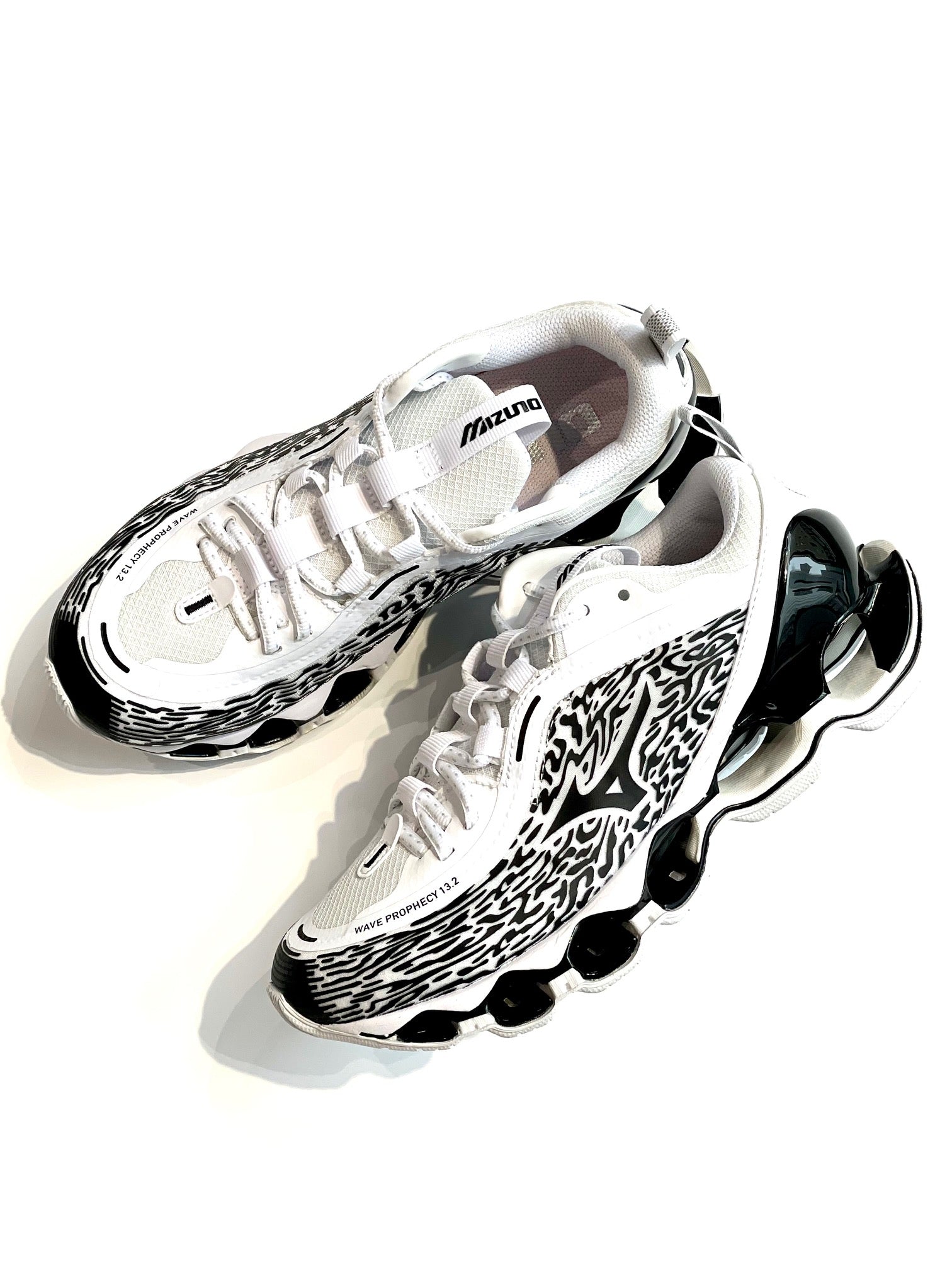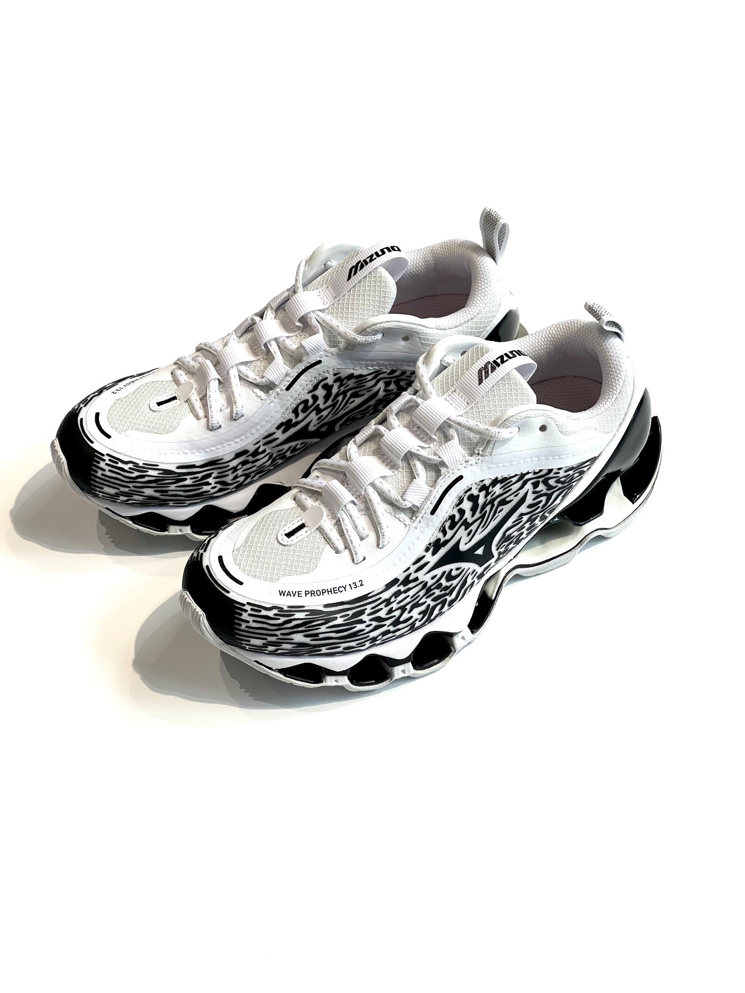 ハイパフォーマンスモデルの「WAVE POPHECY 13」のデザインをライフスタイルモデルへ進化させた13.2。独自のソール「INFINITY WAVE(インフィニティウエーブ)」を搭載し安定性とクッション性を両立、アッパーのカラーリング、ヒールやシュータン周りを変更。スポーツスタイルのデザインディレクションを踏襲したロゴを施し、高級感を感じさせる使用。