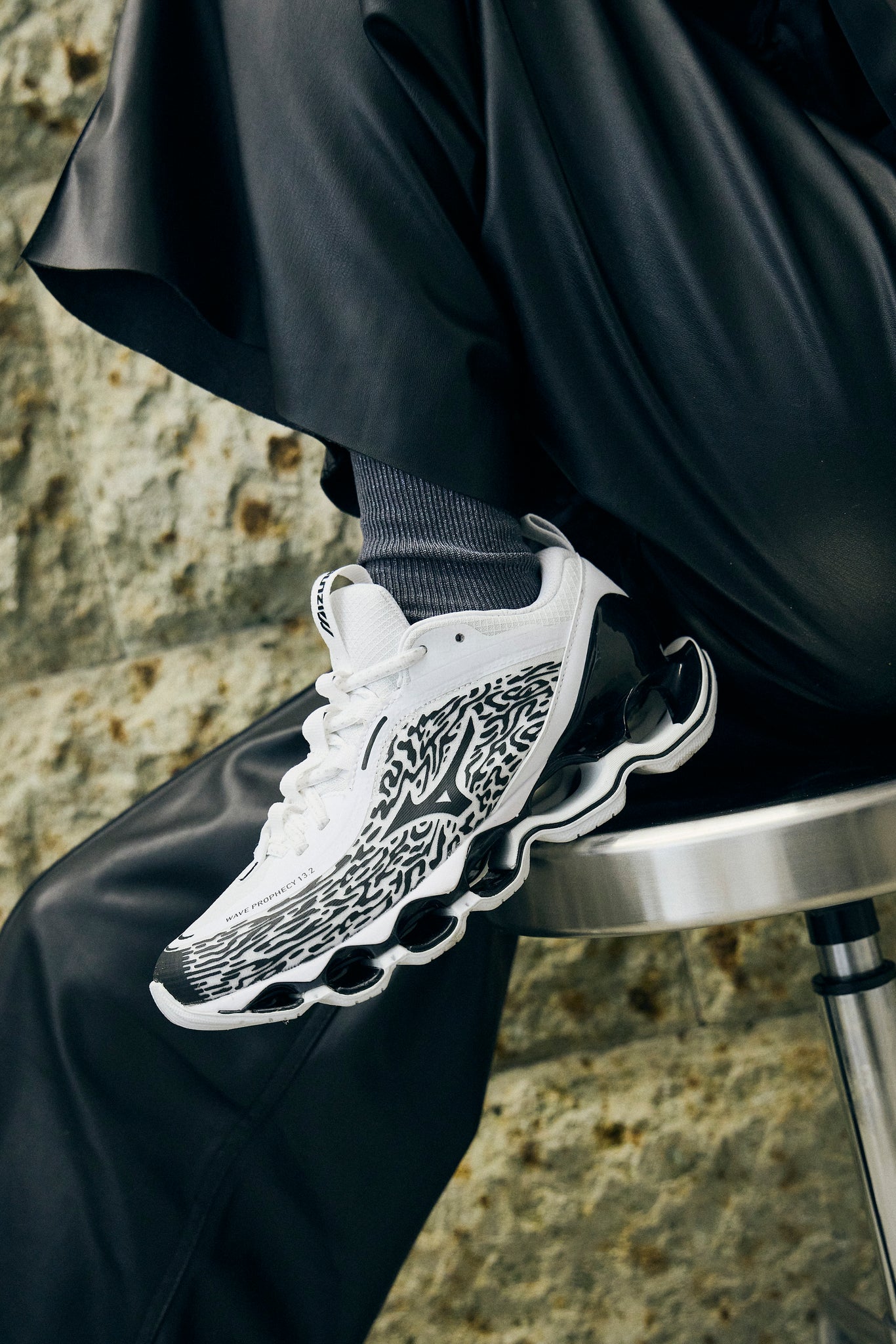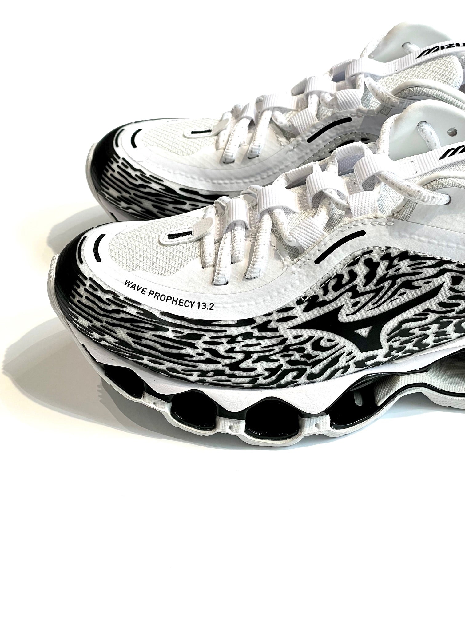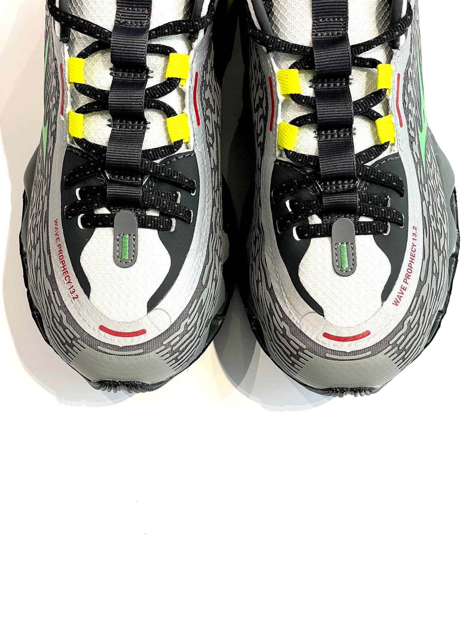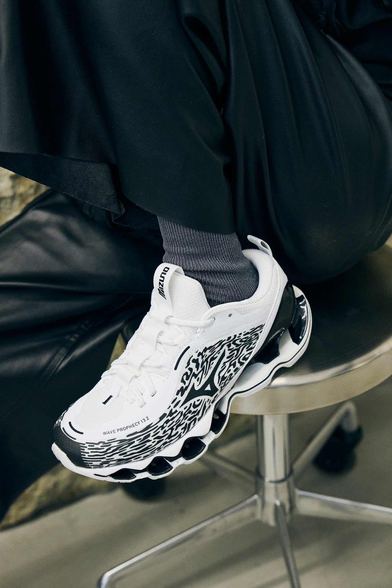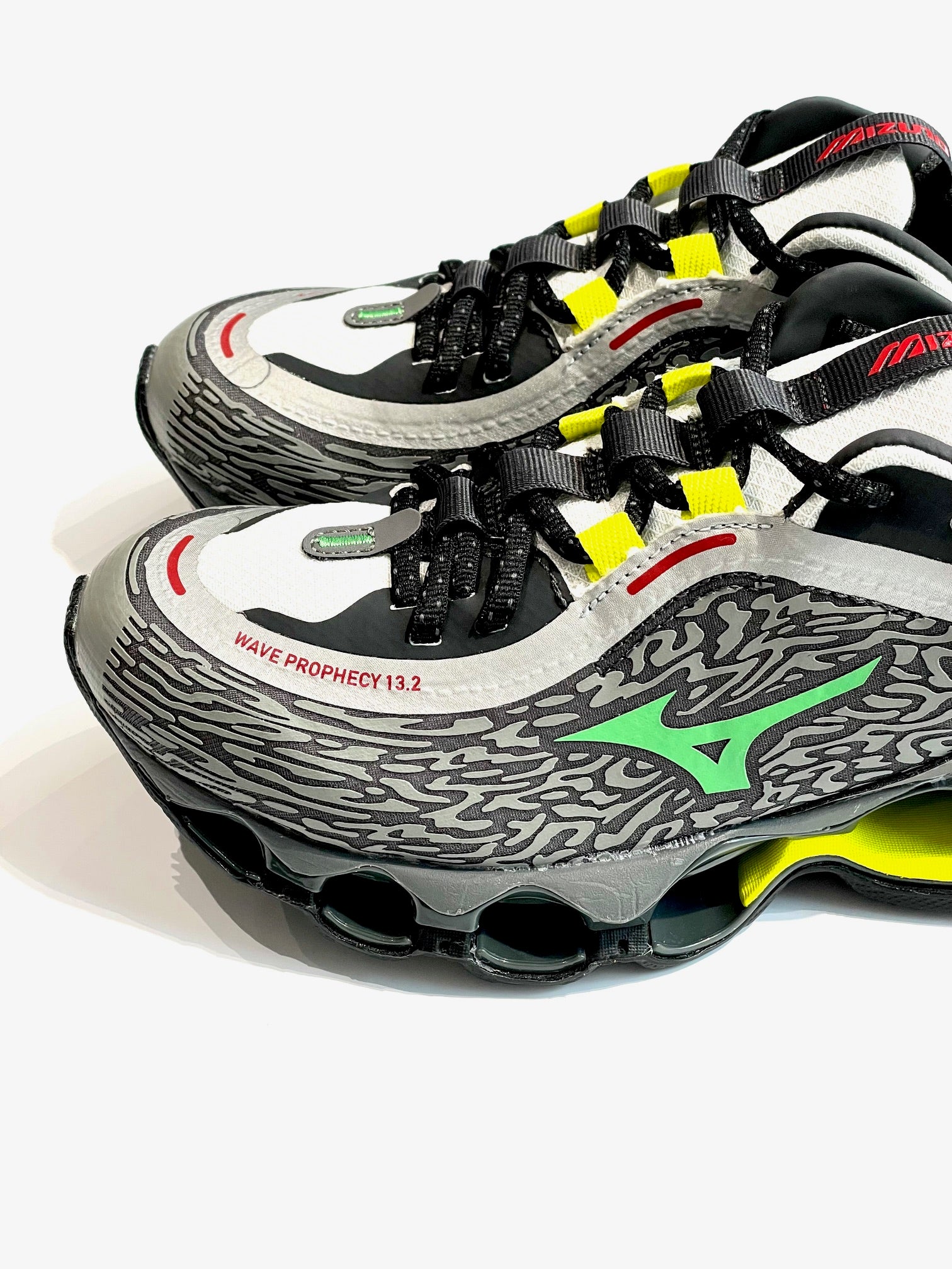 ハイパフォーマンスモデルの「WAVE POPHECY 13」のデザインをライフスタイルモデルへ進化させた13.2。独自のソール「INFINITY WAVE(インフィニティウエーブ)」を搭載し安定性とクッション性を両立、アッパーのカラーリング、ヒールやシュータン周りを変更。スポーツスタイルのデザインディレクションを踏襲したロゴを施し、高級感を感じさせる使用。